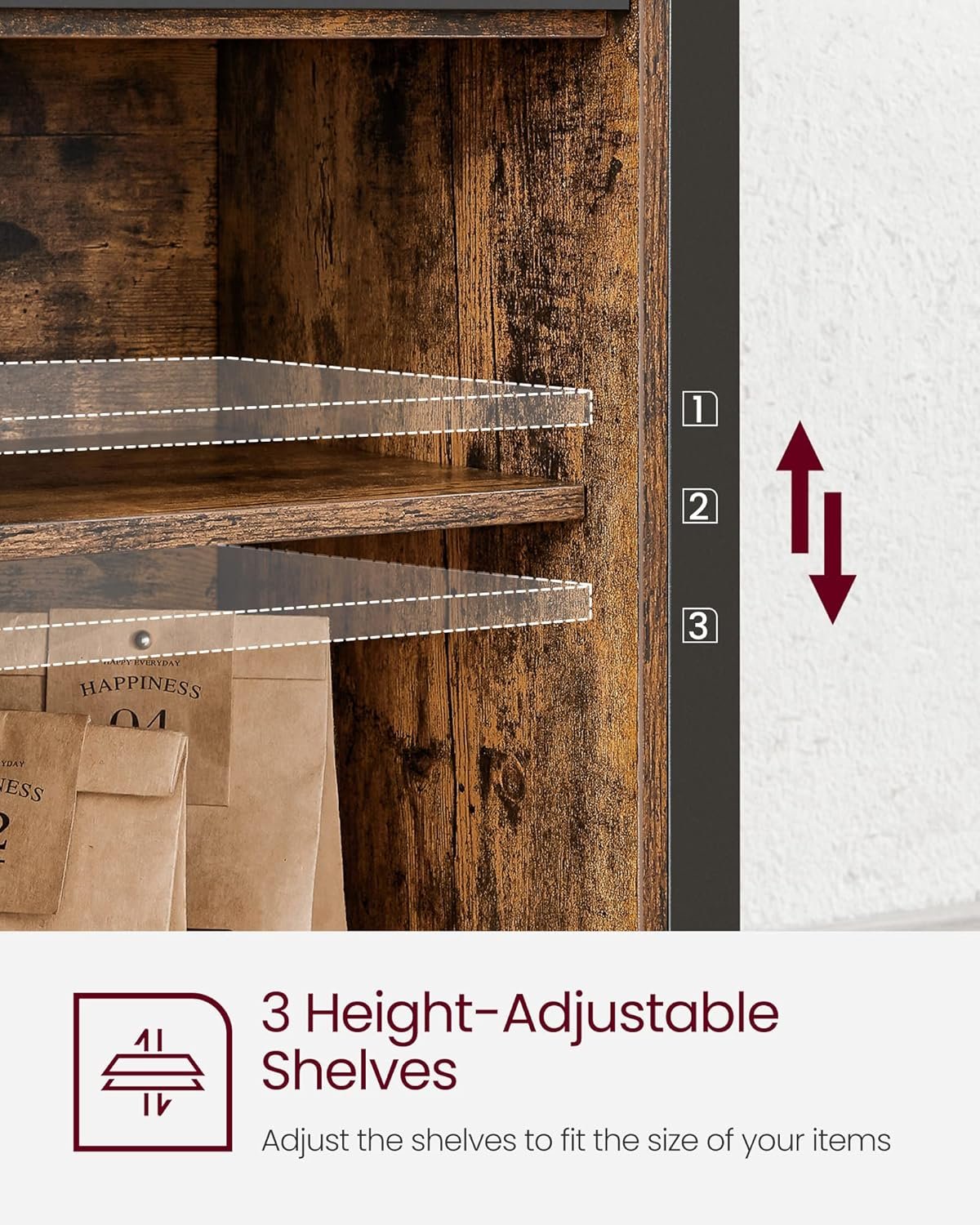 The VASAGLE ULSC092B01 Buffet Cabinet combines an industrial rustic design with versatile storage to elevate any space. This sturdy sideboard features a rustic brown finish paired with an ink black steel frame, offering a blend of style and function for your living room, kitchen, or entryway. With sliding barn doors and three adjustable shelves, it provides six spacious compartments, making it perfect for organizing dishes, media, or decor.